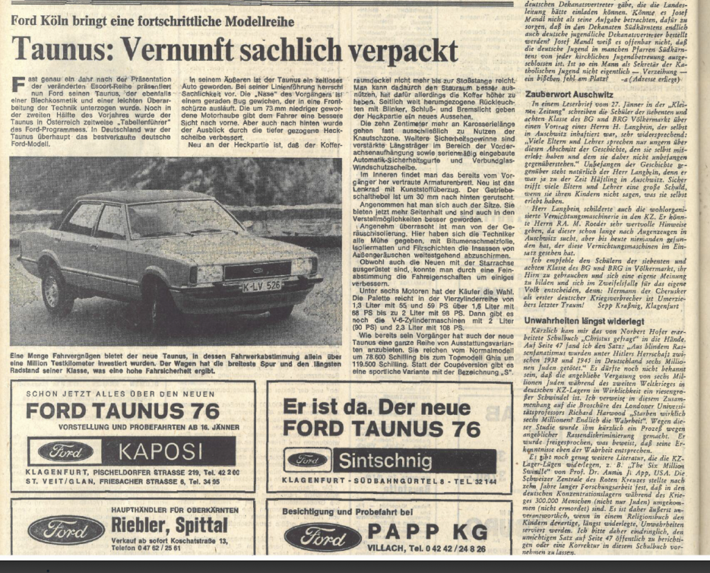La reazione a questa pubblicazione fu quasi immediata: gli studenti ricevettero numerose lettere polemiche accompagnate da materiale di stampo revisionista. Sul settimanale di destra Kärntner Nachrichten comparve una lettera scritta da Sepp Kraßnig con il titolo „Zauberwort Auschwitz“, “Parola magica Auschwitz, in cui l’autore consigliava agli studenti di usare la propria testa senza farsi influenzare e definiva Langbein come «il primo criminale di guerra» (Steffek 2018, pag. 235). Fu persino denunciato il Consiglio scolastico della Carinzia: l’accusa era contro le attività dei testimoni, e si chiedeva al direttore del liceo di Völkermarkt di fornire una dichiarazione ufficiale.