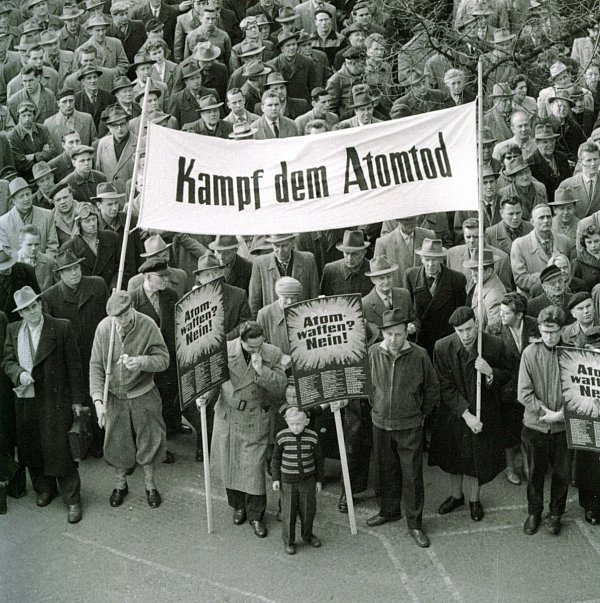 Manifestazione del Kampf de Atomtod a Bielefeld nel 1958. Fonte Stadtarchiv Bielefeld