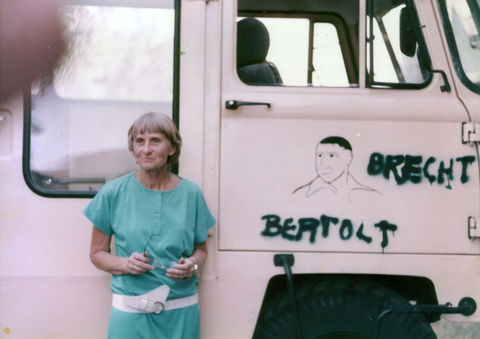 Elisabeth Zilz e il bibliobús “Bertolt Brecht”.