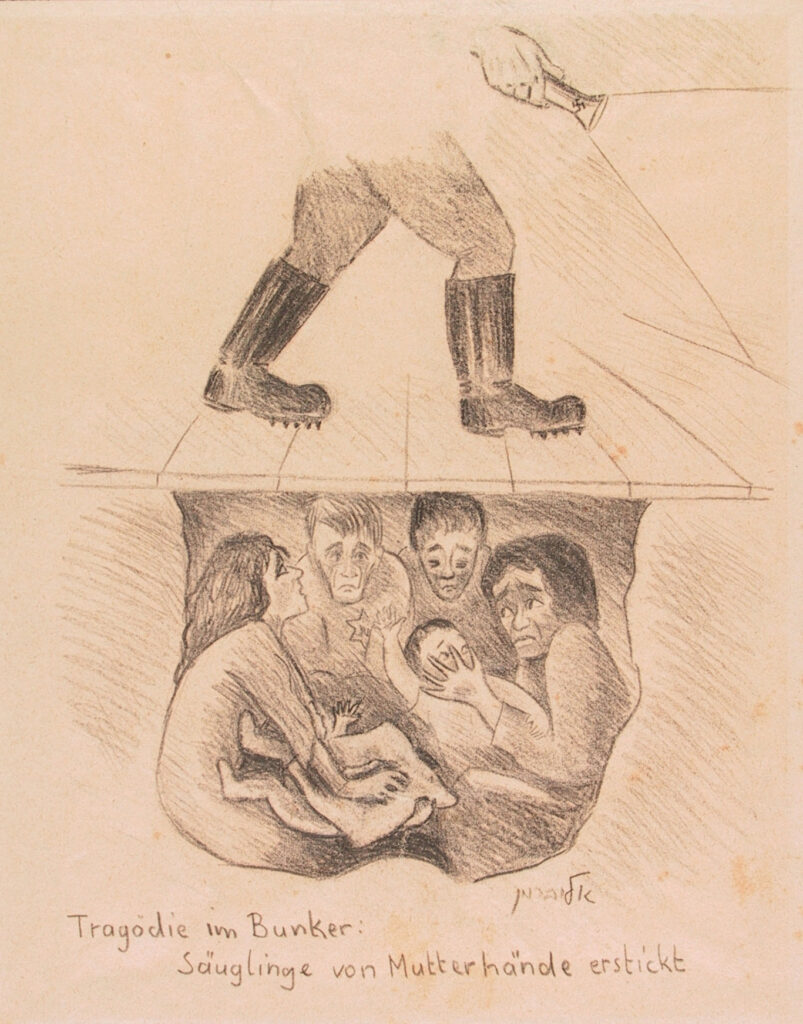 «I bambini piccoli erano un rischio per tutto il bunker. Con il loro pianto potevano tradire tutti quanti: c’era un unico modo, le madri dovevano mettere con le proprie mani dei cuscini sulle bocche dei loro bambini, nella maggior parte dei casi finiva con la morte del bambino. Questa cosa si è verificata in moltissimi dei bunker».