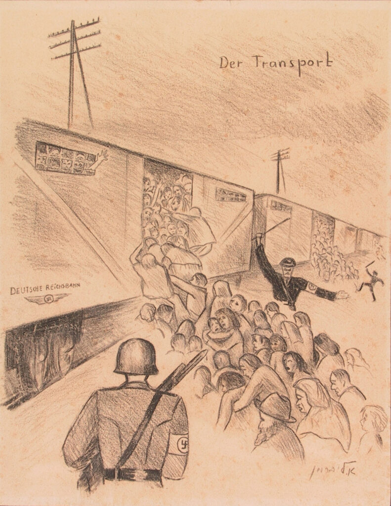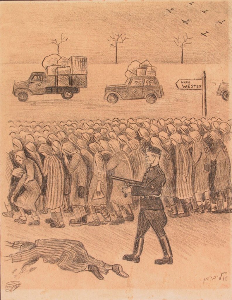 Nel 1950 l’attività artistica e testimoniale di Ella Schieber ha una svolta. Ella espone infatti per la prima volta i disegni sull’esperienza della sua deportazione in un cinema di Haifa. Due anni dopo la collezione è presentata al Ghetto Fighters’ Museum, istituzione che più tardi acquisisce la serie in via definitiva per donazione degli eredi.