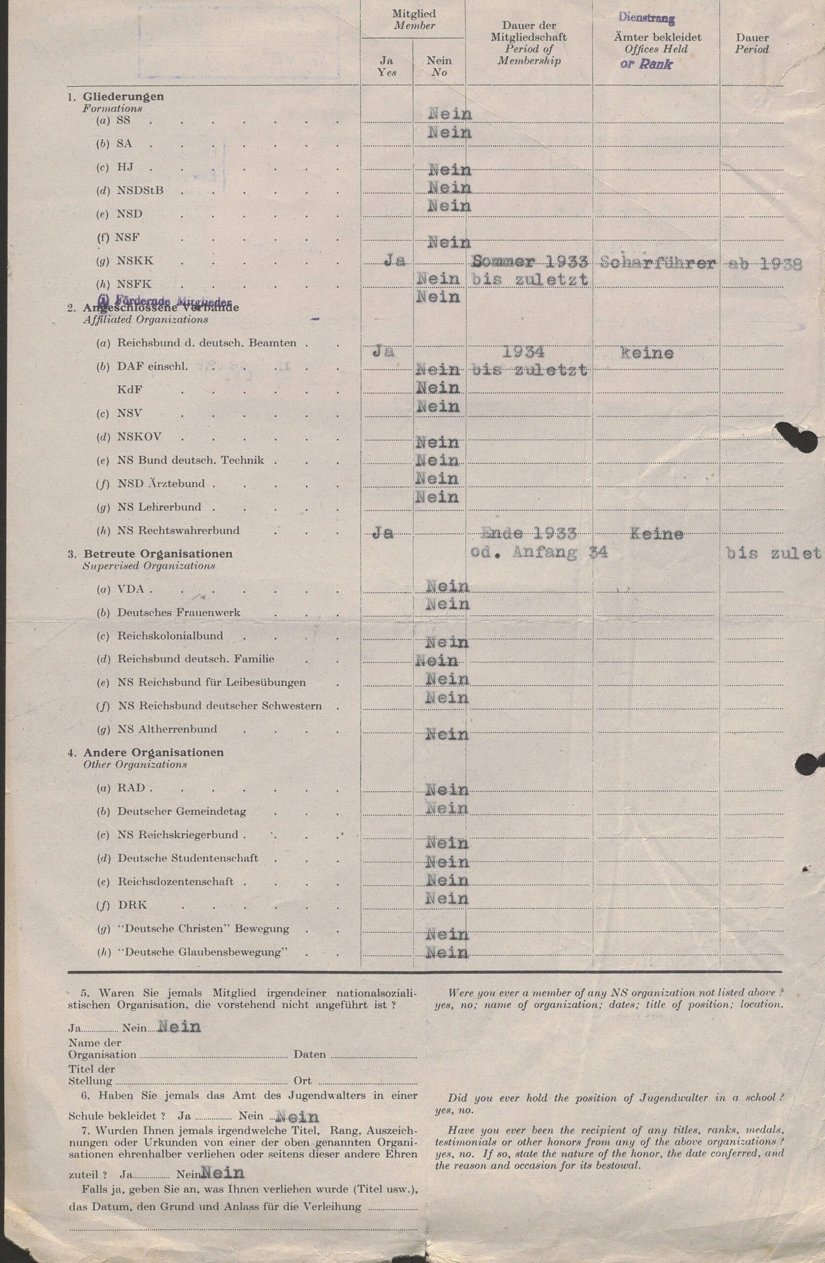 Il fascicolo di denazificazione Ăš stato fornito dal NiedersĂ€chsisches Landesarchiv di WolfenbĂŒttel.