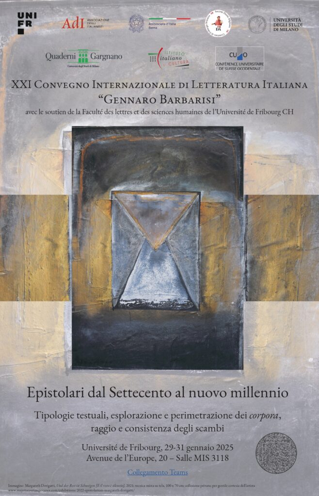 Mercoledì 29 gennaio 2025 alle ore 16:15 Martina Mengoni presenterà il progetto LeviNeT nell’ambito del convegno internazionale Epistolari dal Settecento al nuovo millennio, in programma all’Università di Friburgo, con un intervento dal titolo: La rete epistolare tedesca e germanofona di Primo Levi. Il caso LeviNeT.