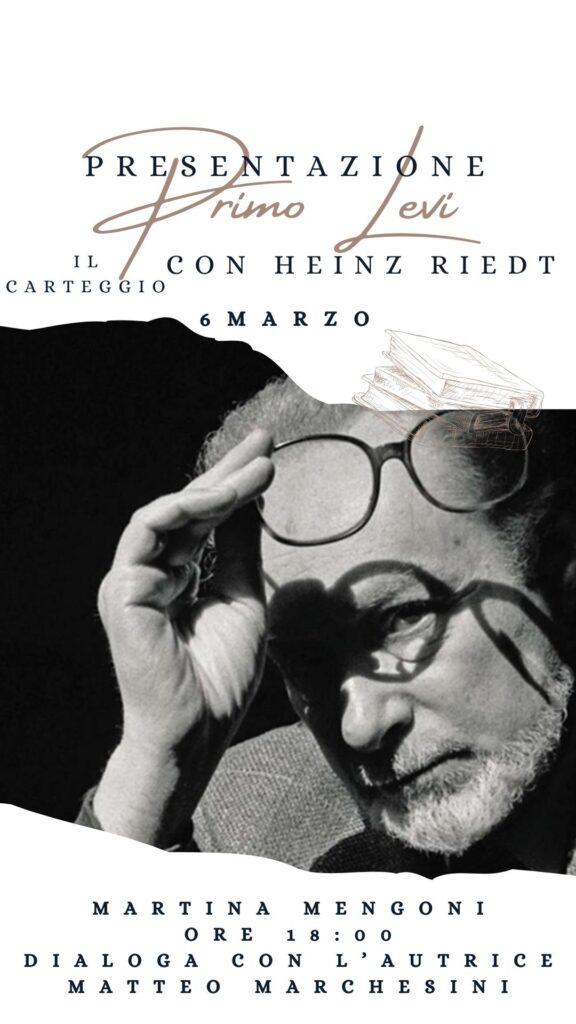 Giovedì 6 marzo 2025 alle 18:00 Martina Mengoni dialogherà con Matteo Marchesini intorno allo scambio epistolare tra Primo Levi e il suo traduttore tedesco Heinz Riedt. L’incontro si terrà alla libreria Ubik di Ferrara, in via san romano 43/47.