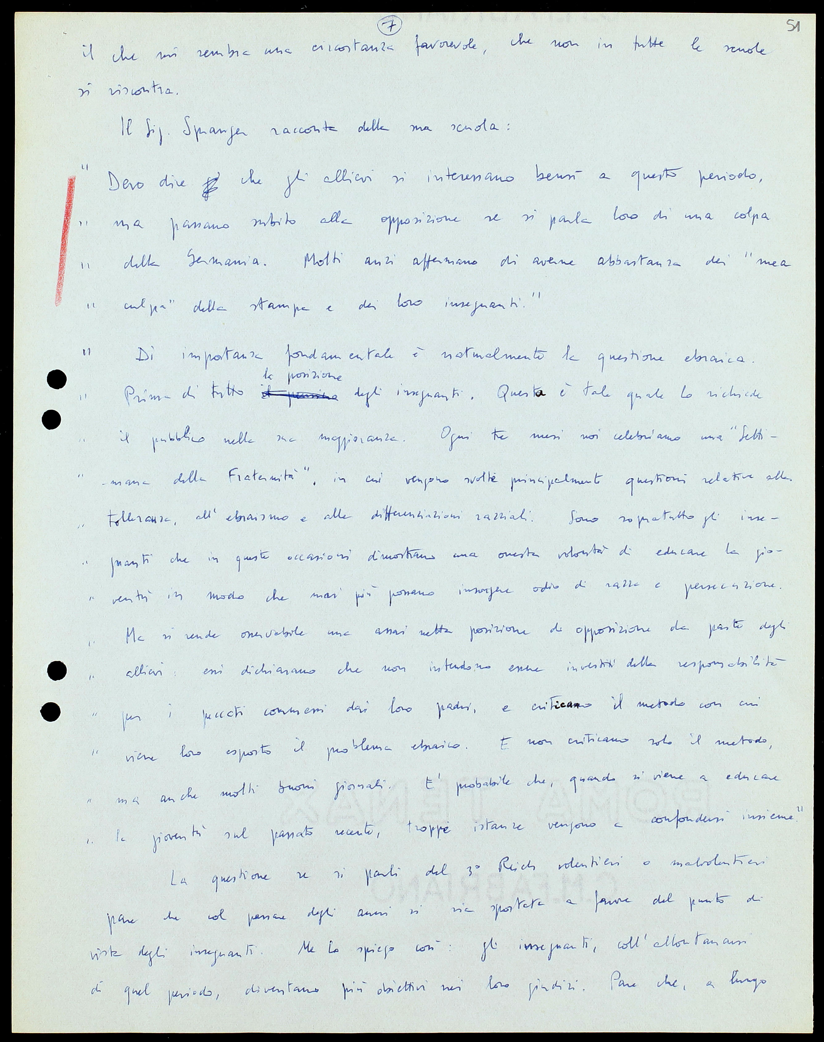 Sono stata lieta di apprendere queste cose dal Sig. Spranger: forse, finalmente, e per la 1a volta nella storia tedesca, si sta sviluppando una generazione che pensa politicamente.