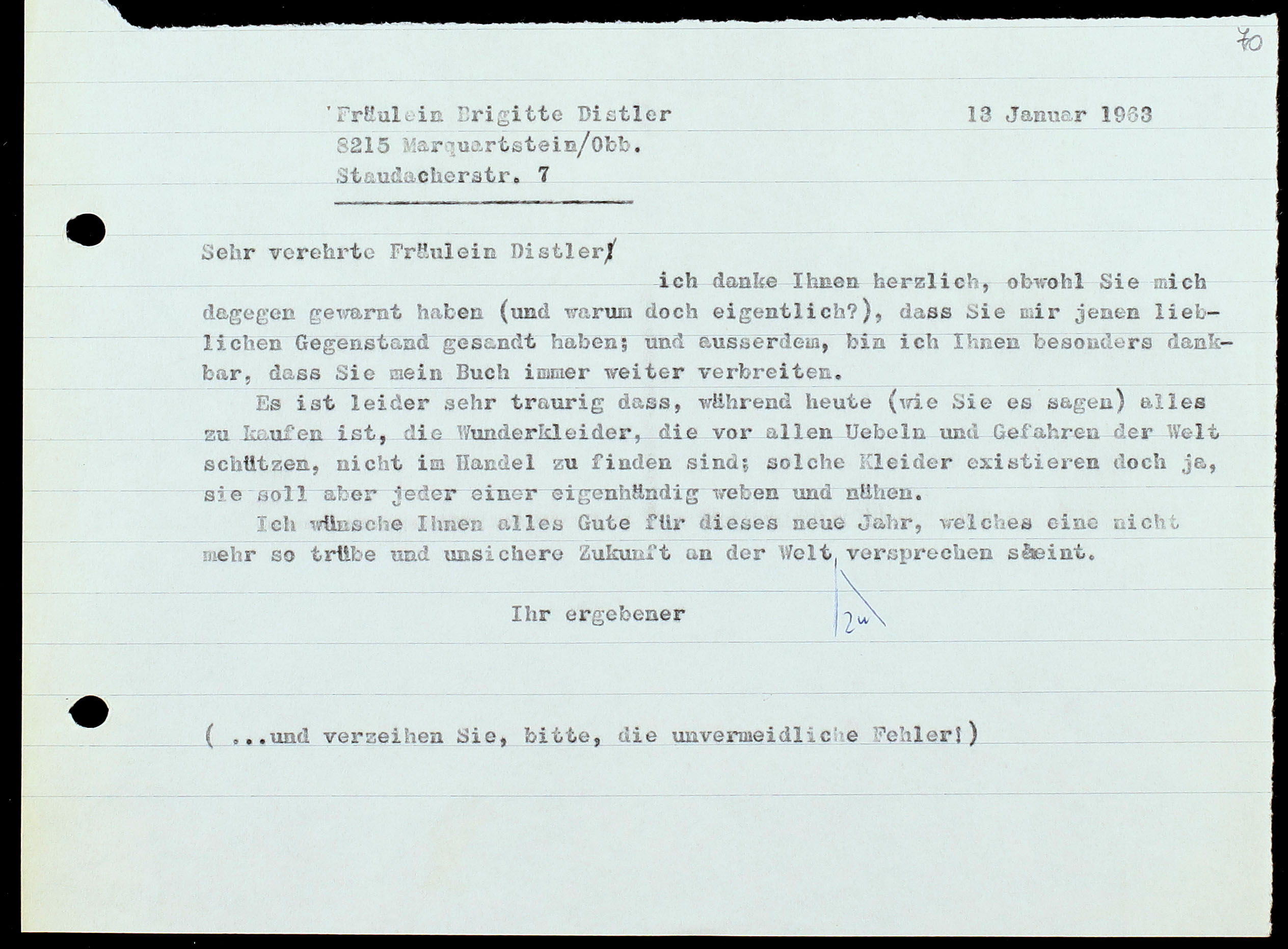 Sehr verehrte Fräulein Distler[1]