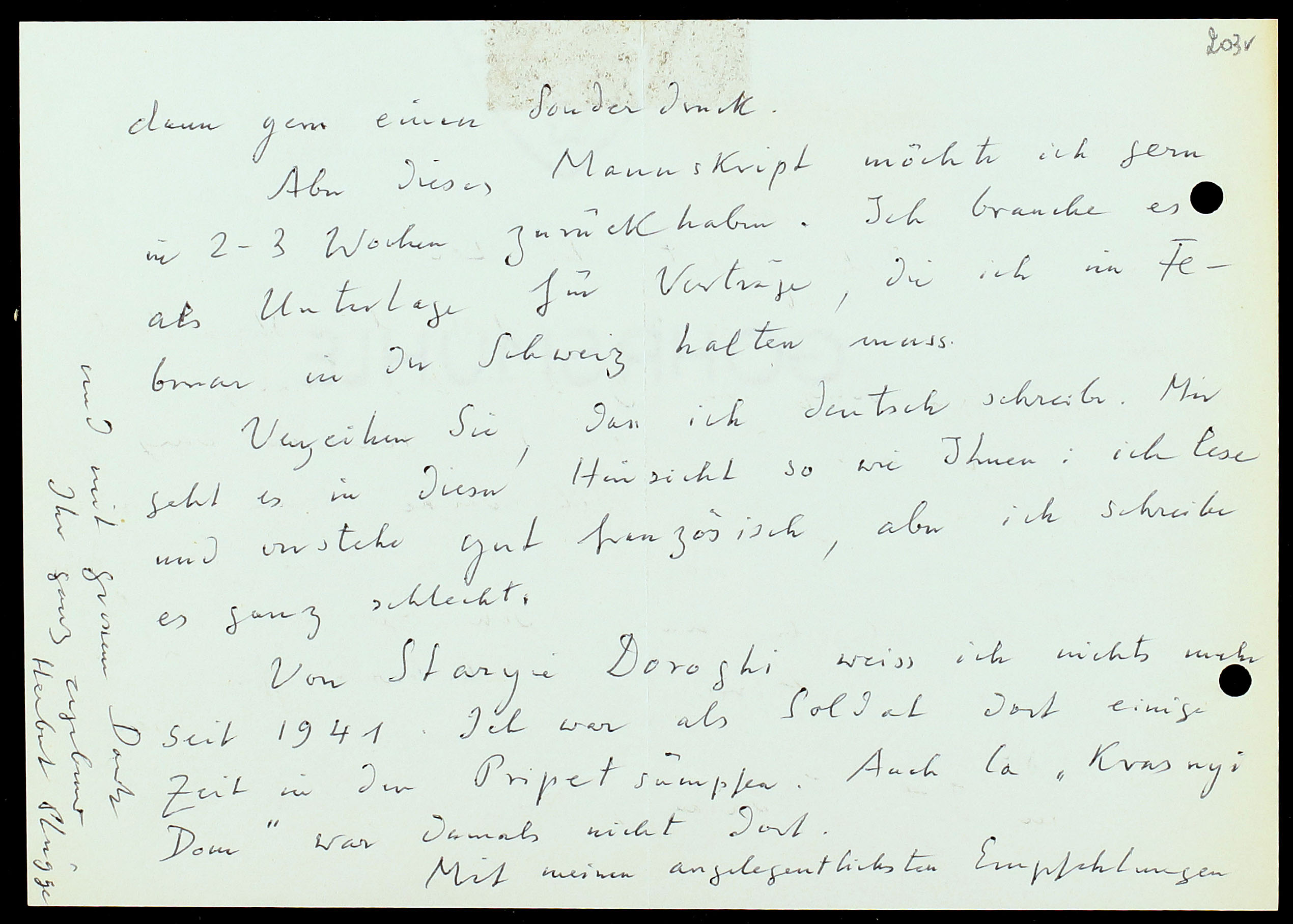 Von Staryie Doroghi weiss ich nichts mehr seit 1941. Ich war als Soldat dort einige Zeit in den Pripjat Sümpfen. Auch la „Krasnyi Dom” war damals nicht dort.